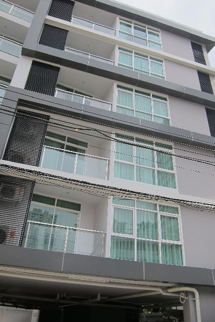 ソイ33を入って200mの細い小路を入り、CNC Residenceを通り過ぎた突き当たりにある低層サービスアパート。オーナー様はインド系タイ人で内装デザイン関連の仕事に携わっていることから、自ら内装のデザインにこだわったモダンな作りになっています。どのお部屋も家具や電気製品が統一されていて落ち着いています。1ベッドと2ベッドが中心なので単身者やご夫婦、乳幼児のいるご家庭に向いています。サービス付きとサービス無しを選べる柔軟な家賃設定になっています。プールとフィットネスは狭いスペースに無理やり作ったという感じで快適とは言えません。ただオーナー様ご自身が9階に事務所に常駐しているため、アフターサービスは素早く対応してくれそうです。網戸も要求すればつけてくれるというお話でした。トゥクトゥクサービスもあり、何といっても静かな所がセールスポイントということです。